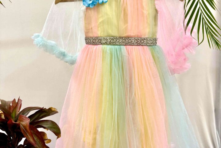 – Layered flared hemline for graceful twirls